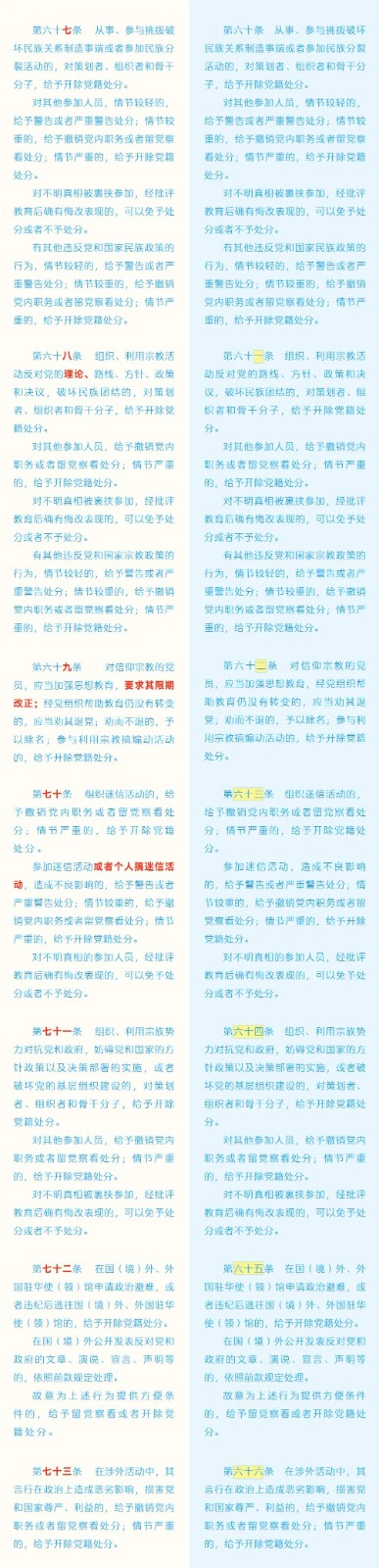 《中國共產(chǎn)黨紀律處分條例》修訂條文對照表